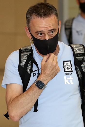 파울루 벤투 감독이 28일 인천국제공항 제2여객터미널을 통해 귀국하고 있다. 파울루 벤투 감독이 이끄는 대표팀은 전날 일본 아이치현 도요타의 도요타 스타디움에서 열린 일본과 2022 동아시아축구연맹(EAFF) E-1 챔피언십(동아시안컵) 남자부 최종 3차전에서 0-3으로 완패했다. 2022.07.28.