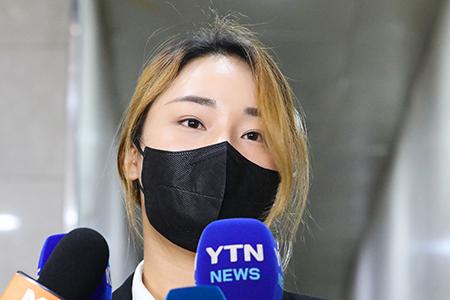 지난 6월 DB그룹 제36회 한국여자오픈 대회에서 골프 규칙을 위반한 윤이나가 20일 오전 서울 강남구 한국여자프로골프협회(KLPGA)에서 열린 상벌위원회를 마치고 입장표명을 하고 있다. 2022.09.20.