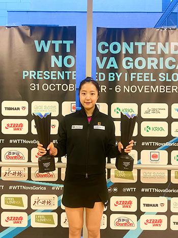 신유빈이 국제대회에서 개인 단식 우승을 차지한 건 이번이 처음이다. 또 처음으로 국제대회 2관왕을 차지했다.