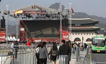 광화문 바로 앞 메인 무대에는 인기 가수의 콘서트를 방불케 할 만큼 많은 조명과 스피커가 설치돼 있고, 양옆에는 대표팀의 주장 손흥민 선수를 비롯한 주요 선수들의 사진이 걸렸다. 광화문 광장에는 메인 스크린을 포함해 총 3개의 스크린이 설치됐다. 앞서 경찰은 광화문 거리응원에 1만5000여명의 인파가 몰릴 것으로 예상했다.