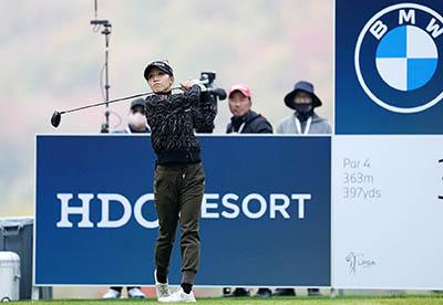 23일 강원 원주 오크밸리CC에서 열린 LPGA투어 BMW레이디스 챔피언십 2022 최종라운드에서 리디아 고가 티샷 후 공을 바라보고 있다. (사진=BMW코리아 제공) 2022.10.23.