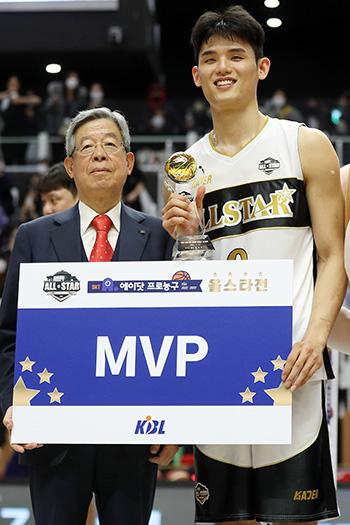 프로농구 수원 KT의 \'베이비 헐크\' 하윤기가 2022~2023 올스타전 최우수선수(MVP)상을 받았다.