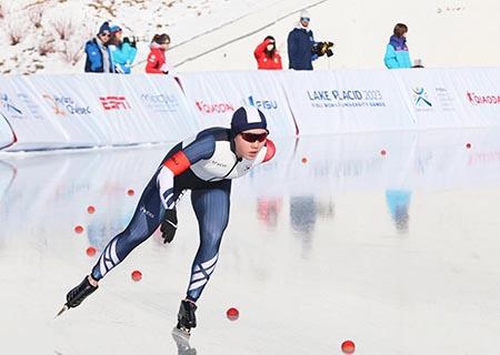 박지우가 17일(한국시간) 미국 뉴욕주 레이크플래시드 올림픽센터 스피드스케이팅 오벌에서 열린 2023 레이크플래시드 동계세계대학경기대회 스피드스케이팅 여자 3000m에서 역주하고 있다. (사진=대한체육회 제공) 2023.01.17.