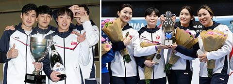 한국 펜싱 남자 사브르와 여자 에페 대표팀이 국제펜싱연맹(FIE) 월드컵 단체전에서 금메달을 목에 걸었다.