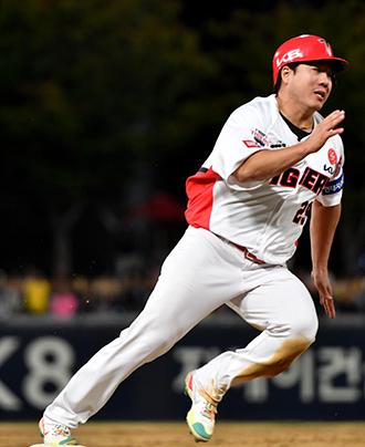 7일 오후 광주 북구 광주-기아챔피언스필드에서 열린 2022프로야구 KIA 타이거즈 대 KT 위즈의 경기, 7회 말 KIA 2번 타자 이창진이 4번 타자 소크라테스의 안타 직후 홈으로 달리고 있다. 2022.10.07.