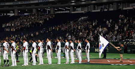 WBC 한국 대표팀은 9일 오후 일본 도쿄돔에서 열린 호주와 1라운드 B조 첫 경기에 나섰다. 본 경기 시작에 앞서 대진국인 호주 국가가 울려 퍼졌고, 뒤이어 애국가가 연주됐다.