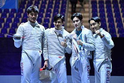 한국 펜싱 남자 사브르 대표팀이 국제펜싱연맹(FIE) 월드컵 단체전 정상에 섰다.