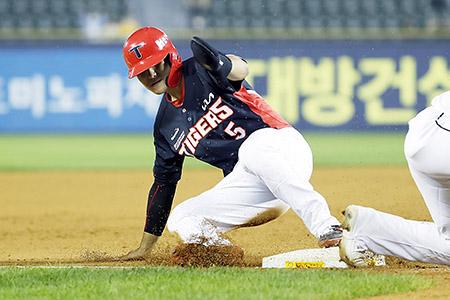 24일 서울 잠실야구장에서 열린 2022 KBO 리그 두산 베어스 대 KIA 타이거즈의 경기, 8회초 1사 상황 2루 주자 KIA 김도영이 두산 정철원의 폭투 때 3루까지 진루하고 있다. 2022.06.24.