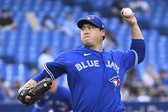토론토 블루제이스 선발 류현진이 1일(현지시간) 캐나다 온타리오주 토론토의 로저스 센터에서 열린 2022 메이저리그 시카고 화이트삭스와의 경기 1회 투구하고 있다. 류현진은 박찬호에 이어 한국인으로는 두 번째로 메이저리그 1000이닝을 돌파했다. 2022.06.02.