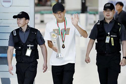 이탈리아 프로축구 세리에A 최우수 수비상을 수상한 나폴리 김민재가 기초군사훈련을 받기 위해 6일 인천국제공항을 통해 귀국하고 있다. 2023.06.06