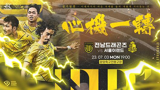 전남드래곤즈(이하 전남)는 하나원큐 2023시즌 K리그2 후반기 반등을 위해 심기일전으로 시즌 19라운드 경기를 서울이랜드FC(이하 서울E)를 3일 오후 7시에 광양축구전용구장으로 불러들여 치른다.