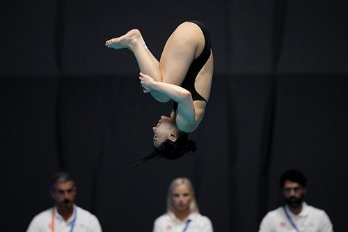 김수지가 20일 일본 후쿠오카현에서 열린 2023 세계수영선수권대회 다이빙 스프링보드 3m 예선에 출전해 연기하고 있다. 김수지는 285.05.로 50명 중 11위를 기록했다. 2023.07.20.