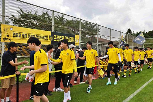 덥고 습한 날씨에도 불구하고 200명의 전남 팬들이 함께한 이날 행사는 하이파이브, 훈련 관전, 애장품 추첨, 소통타임 등 다양한 스킨십 프로그램이 진행됐다.