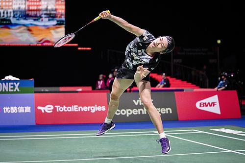 안세영은 26일(한국시간) 덴마크 코펜하겐 로얄 아레나에서 열린 대회 여자 단식 준결승에서 세계 3위 천위페이를 2-0(21-19 21-15)으로 이겼다.