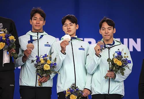 한국은 2019년 금메달 이후 4년 만에 남자 단체전 시상대에 올랐다.