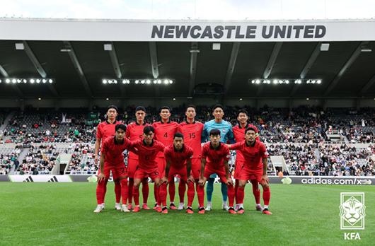 사우디아라비와의 친선경기에 선발 출전한 축구 국가대표팀 11명의 모습. 오른쪽 맨 아래가 이기제. 2023.09.13. (사진=대한축구협회 제공)