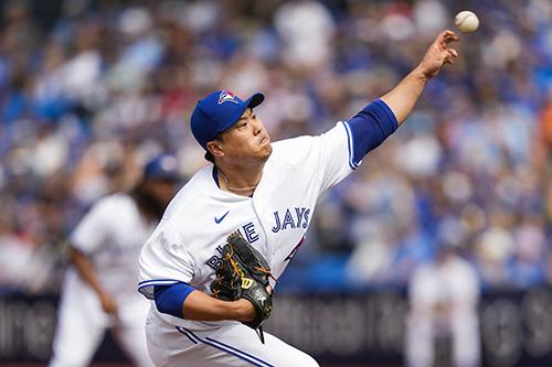 류현진은 18일(한국시간) 캐나다 온타리오주 토론토의 로저스센터에서 열린 2023 메이저리그(MLB) 보스턴 레드삭스와의 경기에 선발 등판해 4⅔이닝 6피안타 2볼넷 2탈삼진 무실점 쾌투를 펼쳤다.