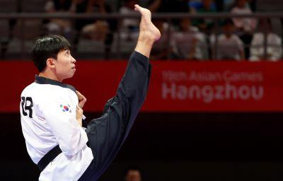 태권도 품새 대표팀의 강완진(25·홍천군청)이 2022 항저우 아시안게임에서 한국 선수단 첫 금메달의 주인공이 됐다.