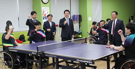 김 지사는 이날 순천장애인국민체육센터를 방문해 전국장애인체전 전남 대표로 출전하는 오영종 탁구 감독과 선수들을 직접 만나 격려하고 선전을 당부했다.