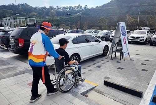 오는 8일까지 6일간 열전에 돌입한 제43회 전국장애인체전이 주말·휴일도 잊은 채 경기장 곳곳에서 관람객 안전과 편의를 위해 헌신하는 자원봉사자의 열정적 활약으로 빛나고 있다. /전남도 제공