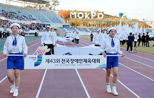 제43회 전국장애인체육대회는 지난 3일 목포종합경기장에서 개막했으며 이날 차기 개최지 경남도에 대회기를 넘기는 것을 끝으로 6일간의 열전을 마무리했다.