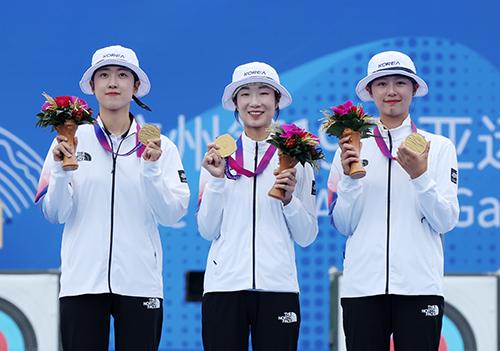 임시현(한국체대), 안산(광주여대), 최미선(광주은행) 등으로 팀을 꾸린 한국은 9일(한국시간) 태국 방콕에서 열린 대회 마지막 날 여자 단체전 결승에서 중국을 6-2(56-53 60-55 53-55 57-55)로 꺾었다.