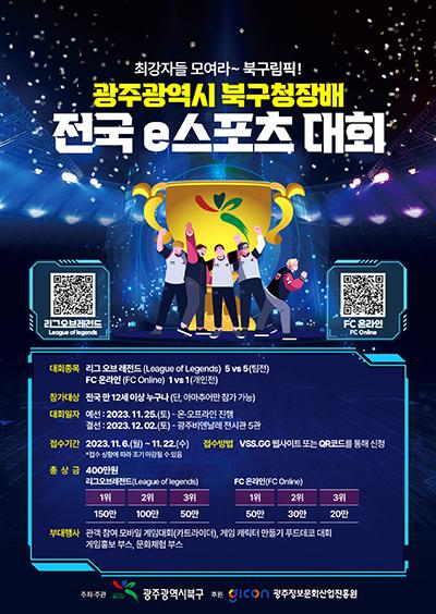 광주 북구는 다음 달 2일 광주비엔날레전시관 5관에서 \'2023 광주 북구청장배 전국 e스포츠 대회\'를 연다고 13일 밝혔다.