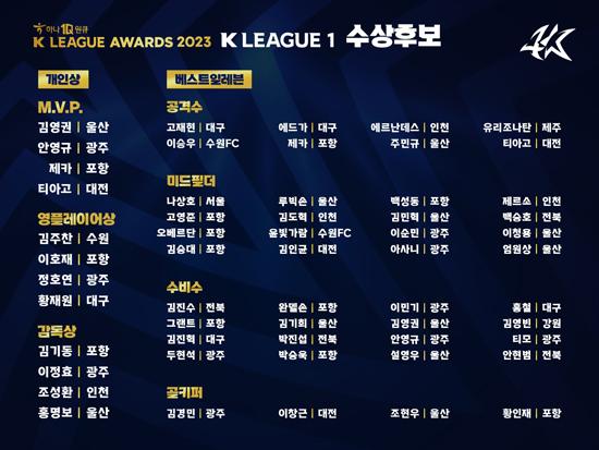 프로축구 K리그1 2023시즌 시상식 후보 명단. (사진=프로축구연맹 제공)