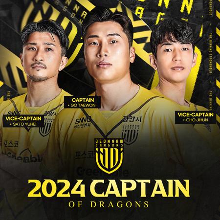 전남드래곤즈(이하 전남)가 2024년 용의 해를 이끌어갈 주장으로 고태원, 부주장으로 조지훈, 유헤이를 선임했다.