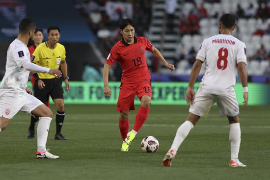 15일 (현지시각) 카타르 도하 자심 빈 하마드 스타디움에서 열린 2023 아시아축구연맹(AFC) 카타르 아시안컵 E조 조별리그 1차전 대한민국과 바레인의 경기 시작 후반, 이강인이 패스를 시도하고 있다. 2024.01.15.