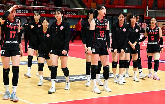 시즌 2승 25패(승점 8)를 기록한 페퍼저축은행은 최하위에 머물렀다. 지난해 기록했던 팀 최다승(5승)에 못 미칠 가능성이 더 커졌다.