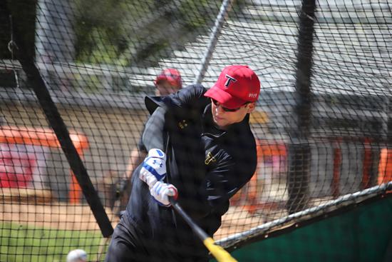 KIA 타이거즈의 주장 나성범(35)이 포스트시즌 진출 염원을 이루기 위해 훈련장에서 구슬땀을 쏟고 있다.