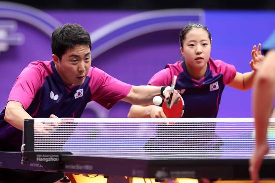 임종훈-신유빈은 13일(한국시간) 싱가포르 스포츠 허브에서 열린 대회 혼합 복식 8강전에서 오비디우 이오네스쿠-베르나데트 쇠츠 조(루마니아)를 게임 스코어 3-0(11-8 11-8 15-13)으로 제압했다.
