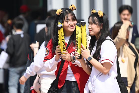 23일 오후 광주 북구 광주-기아챔피언스필드에서 열린 2024 신한 쏠뱅크 KBO리그 KIA 타이거즈 대 키움히어로즈의 경기, 관중들이 입장 전 경기장을 배경으로 기념사진을 찍고 있다. 2024.03.23.
