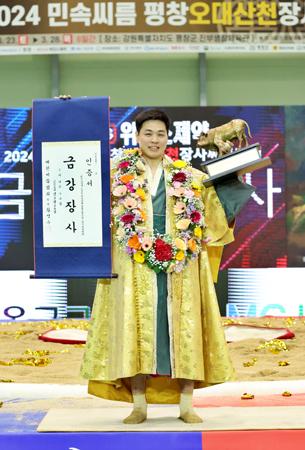 최정만(영암군민속씨름단)이 평창오대산천장사씨름대회에서 개인 통산 19번째 금강장사에 등극했다.