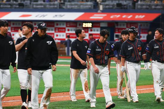 지난 5일 서울 구로구 고척스카이돔에서 열린 2024 KBO리그 한화 이글스 대 키움 히어로즈의 경기에서 키움 히어로즈가 11대7로 승리를 거뒀다. 한화 이글스 선수들이 아쉬워하며 그라운드를 빠져 나가고 있다. 2024.04.05.