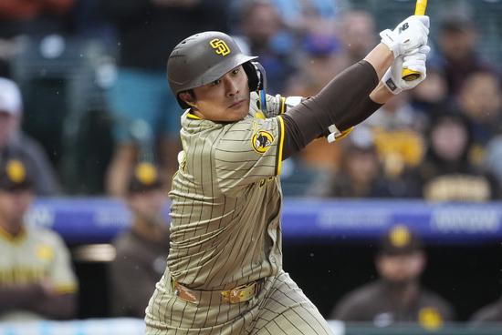 김하성은 24일(한국시각) 미국 콜로라도주 덴버의 쿠어스필드에서 열린 \'2024 미국프로야구 메이저리그(MLB)\' 콜로라도 로키스와의 원정경기에 유격수 겸 5번타자로 선발출전, 2타수 2안타 1득점 1도루를 기록중이다.