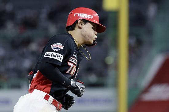 첫 두 타석에서 뜬공으로 물러난 김도영은 세 번째 타격에서 대포를 폭발했다. 5회 선두 타자로 등장해 구원 등판한 우완 김선기의 시속 143㎞ 직구를 걷어 올려 외야 가운데 담장을 넘어가는 1점 홈런을 터트렸다.
