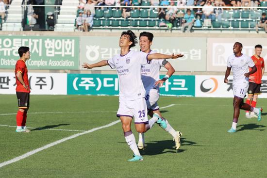 이날 출발은 김포가 좋았다. 전반 32분 프리킥 기회에서 플라나가 올려준 공을 박경록이 절묘한 헤더로 마무리하며 선제골을 뽑아내며 김포가 1-0으로 앞서갔다.