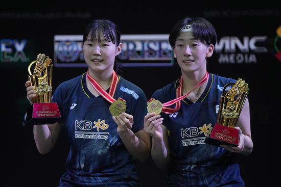 배드민턴 여자 복식 백하나(MG새마을금고)-이소희(인천국제공항) 조가 \'2024 인도네시아 오픈 배드민턴 선수권대회\' 우승을 차지했다.