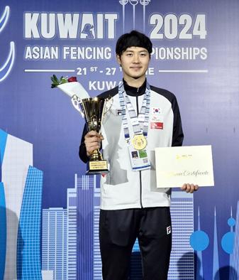 오상욱은 22일(현지시간) 쿠웨이트 쿠웨이트시티에서 열린 2024 아시아선수권대회 남자 사브르 개인전 결승에서 선천펑(중국)을 15-9로 물리치고 금메달을 거머쥐었다. 2019년 일본 지바 대회 이후 5년 만의 아시아선수권 개인전 우승이다.