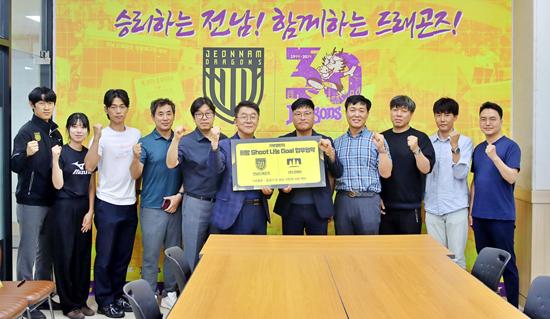 전남드래곤즈(이하 전남)가 기부를 통한 지역사회의 소외계층에게 꿈과 희망을 전달하는 ‘희망슛! 나눔골! 기부챌린지’에 ㈜크레이가 동참했다고 8일 밝혔다.