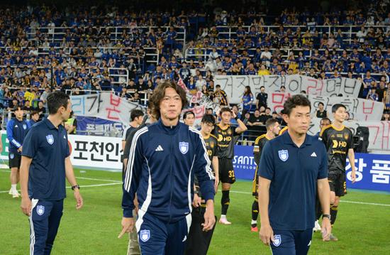 차기 사령탑 후보에 꾸준히 오르고도 거절 의사를 분명히 밝혔던 홍 감독의 변심에 울산 팬들의 환호는 야유로 바뀌었다.
