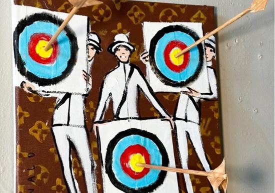 공개된 작품에는 2024 파리올림픽 한국 여자 양궁팀 임시현, 전훈영, 남수현 세 선수가 환하게 웃으며 각각의 과녁을 들고 있다. 과녁 한가운데에는 나무로 만든 화살이 모두 10점을 뜻하는 정중앙에 꽂혀 있다.