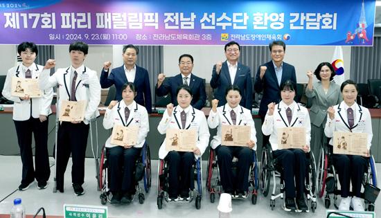 전남도는 23일 전남도체육회관에서 2024 파리 패럴림픽에 출전해 대한민국과 전남을 빛낸 지역 소속 및 출신 선수와 그 가족을 초청해 환영 행사를 개최했다.