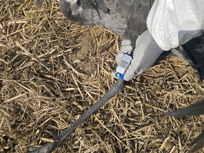 위치추적기를 부착한 흑두루미 / 순천시 제공