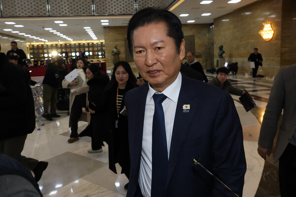 더불어민주당 정청래 대표가 10일 국회에서 조국혁신당과의 합당 논의를 주제로 열린 비공개 의원총회 도중 외부 일정 참석을 위해 이동하고 있다. 연합뉴스