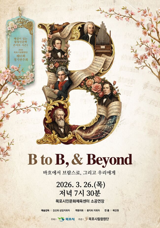 이번 공연은 서양 음악사를 빛낸 거장들의 이름 앞 글자 ‘B’를 테마로, 바로크의 요한 제바스티안 바흐부터 고전주의의 루트비히 판 베토벤, 낭만주의의 프란츠 슈베르트와 로베르트 슈만, 요하네스 브람스에 이르기까지 시대를 아우르는 입체적인 음악 여정을 선보인다. 더 나아가 현대 한국 창작 합창으로 확장되는 ‘Beyond’ 무대를 통해 과거와 현재를 잇는 특별한 감동을 전할 예정이다.