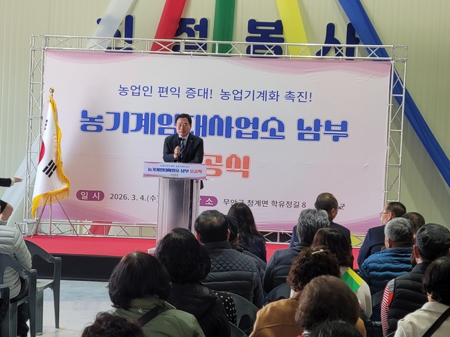 한편 무안군은 이번 남부분소 개소로 무안본소(무안읍), 동부분소(일로읍), 서부분소(운남면), 북부분소(해제면)와 함께 총 5곳의 농기계임대사업소를 운영하게 됐다. 현재 52종 843대의 농기계를 보유하고 있다.