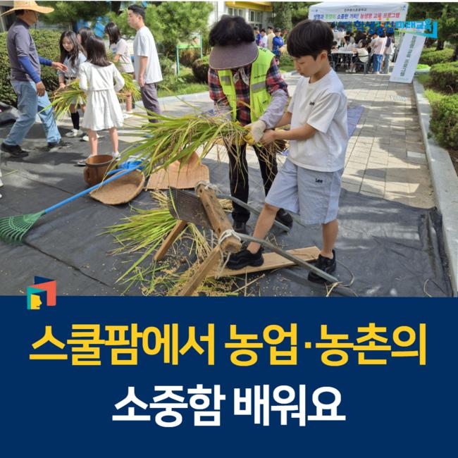 ‘스쿨팜’은 학교와 농장의 합성어로 학생들이 작물을 기르고, 재배하고, 조리하는 과정을 체험하면서 농업농촌의 가치를 배우고, 도시와 농촌의 지속 가능한 발전을 도모하는 사업이다.